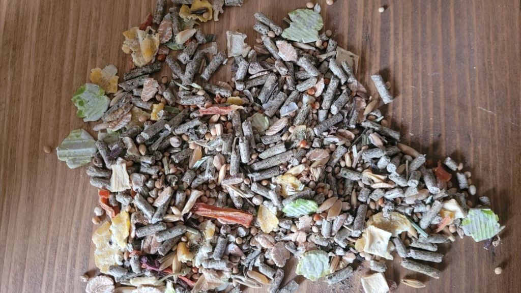 Bunny Gerbil Dream Expert – This is the mix to go for. If it’s out of stock on Ebay, try Miscota or Amazon but it’s imported so postage costs will be higher. 500g. Crude protein 14% · crude oils and crude fats 4% · crude fibre 6.5% · crude ash 5.5% · calcium 0.6% · phosphorous 0.4%. While the Basic version above is good, Expert is a much better Premium mix. As with the Basic version it has low fat content, but you could add an extra 20g of protein. This sometimes has import problems to the UK, however at the time of writing (December 2025) it is available through Bunny Nature UK on Ebay). Ingredient List – plata millet, canary seed, pea flakes, spelt flakes, quinoa seeds (6%), kamut, mung beans (5%), silver millet, oats, red millet, dari, lucerne, dandelion leaves (3%), amaranth puffed (2,5%), carrots, parsnips, chicory root, sesame, ribwort (1%), oat flakes, calcium carbonate, beetroot, meal worms (1%), camomile blossoms, crickets (0,2%), semolina bran. Note: This is an imported food so buy in bulk to save on import costs.