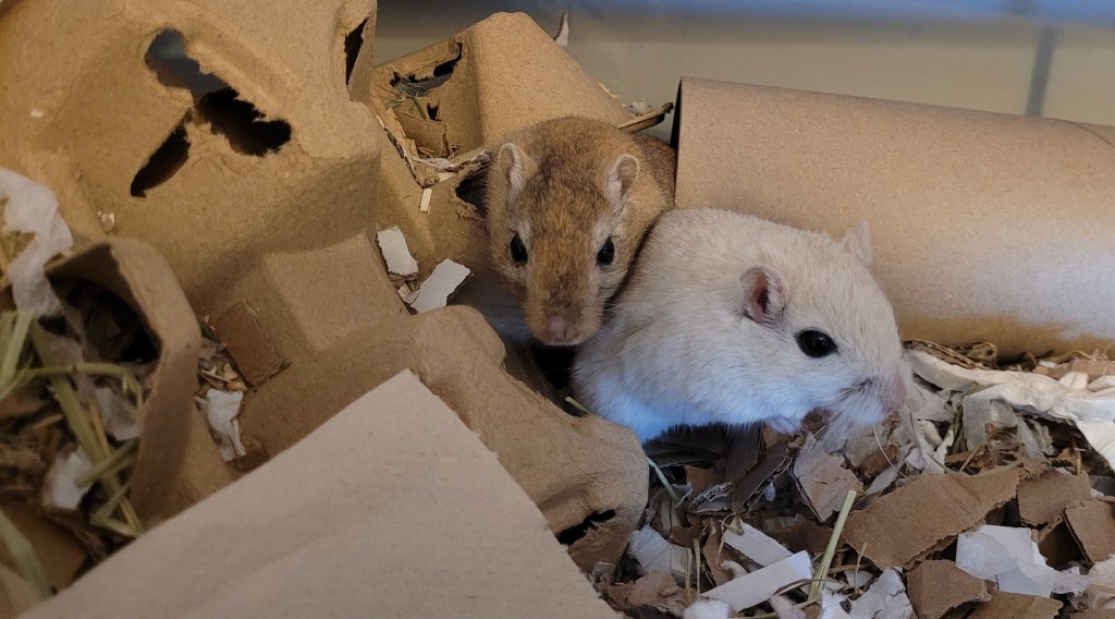 If you’re taking a Gerbil to the vet, take their friends too. Gerbils primarily recognise each other by scent, and for that reason it’s important that they are not separated for any longer than absolutely necessary. They can “forget” the scent of their partner within a few days or as short as a couple of hours. If one Gerbil has an operation, make sure they all go together and are re-united as soon as recovery is complete, otherwise you could risk a de-clan and need to re-bond, see here Bonding & Split Cage – Gerbil Care